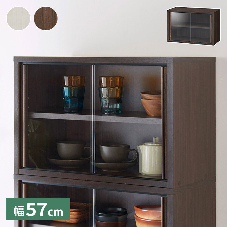 白井産業 食器棚 ミニ 幅57cm 高さ38cm ニカップボード ガラス引き戸 組み合わせて使える キッチン(代引不可)