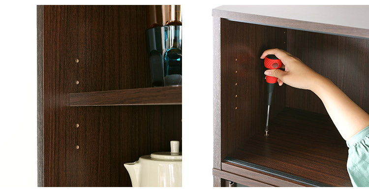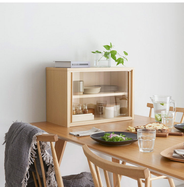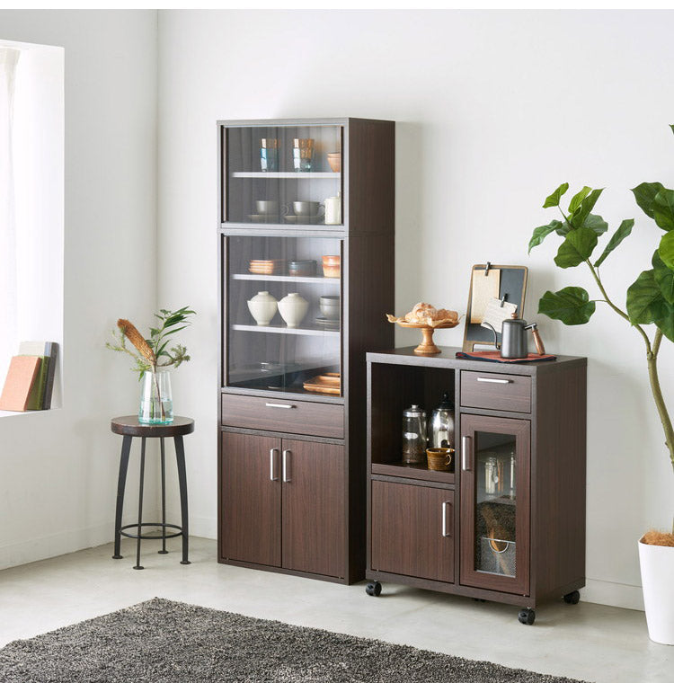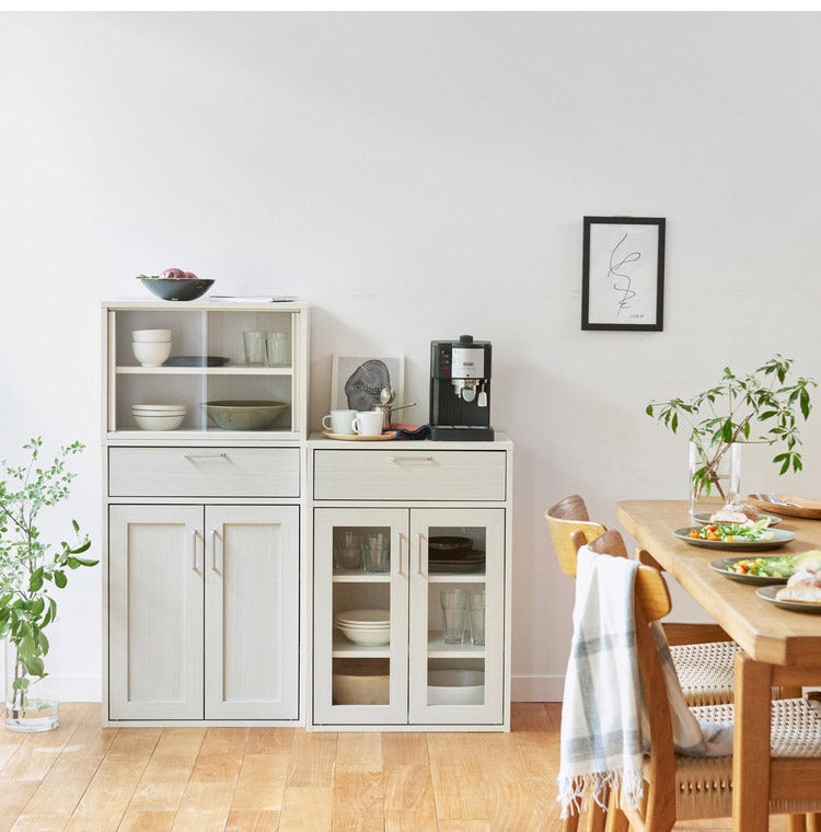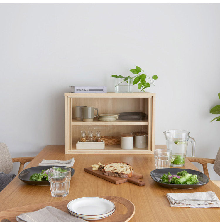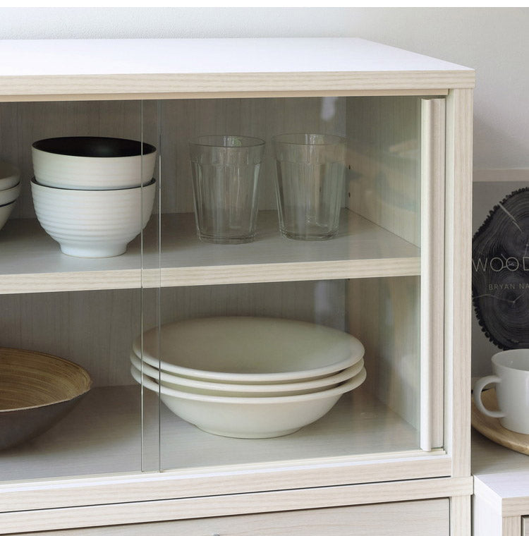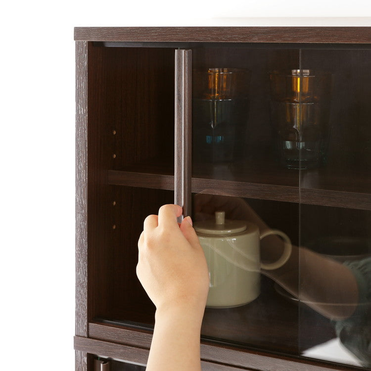 ガラス扉は引き戸タイプ。食器などの収納物をさっと取り出しやすくておすすめです。