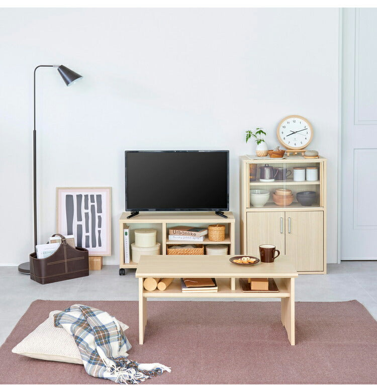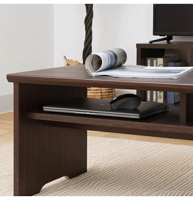 天板の下には中棚付き。本や雑誌、ノートPCやリビング小物の収納に便利です。