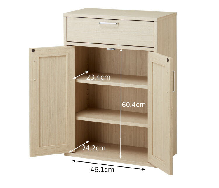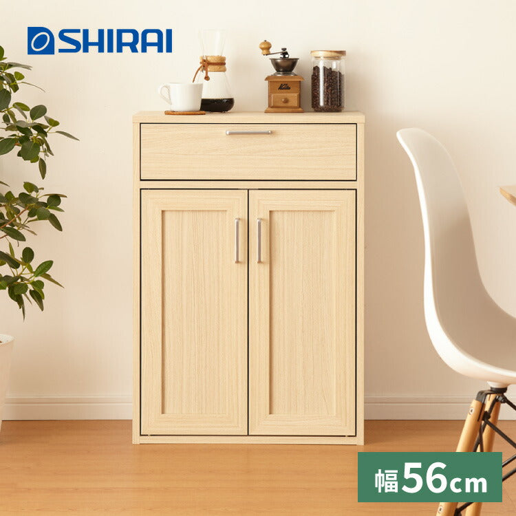 キャビネット 引き出し付き フルニコ 幅56.6cm ナチュラル 大容量 収納 高さ80cm 木目調 シンプル カフェ風 北欧 カントリー ウッド調 おしゃれ かわいい 温もり ナチュラル シリーズ 収納棚 白井産業 (代引不可)