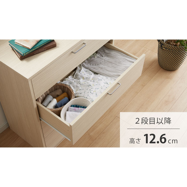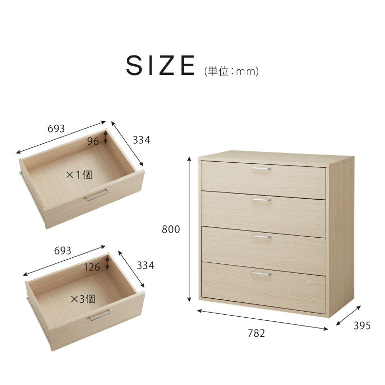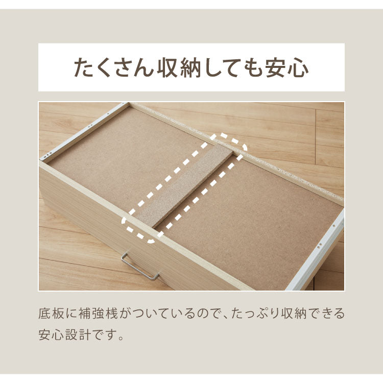 引き出しは4杯。引き出しの底板に補強桟があるので、衣類をたくさん収納しても安心。