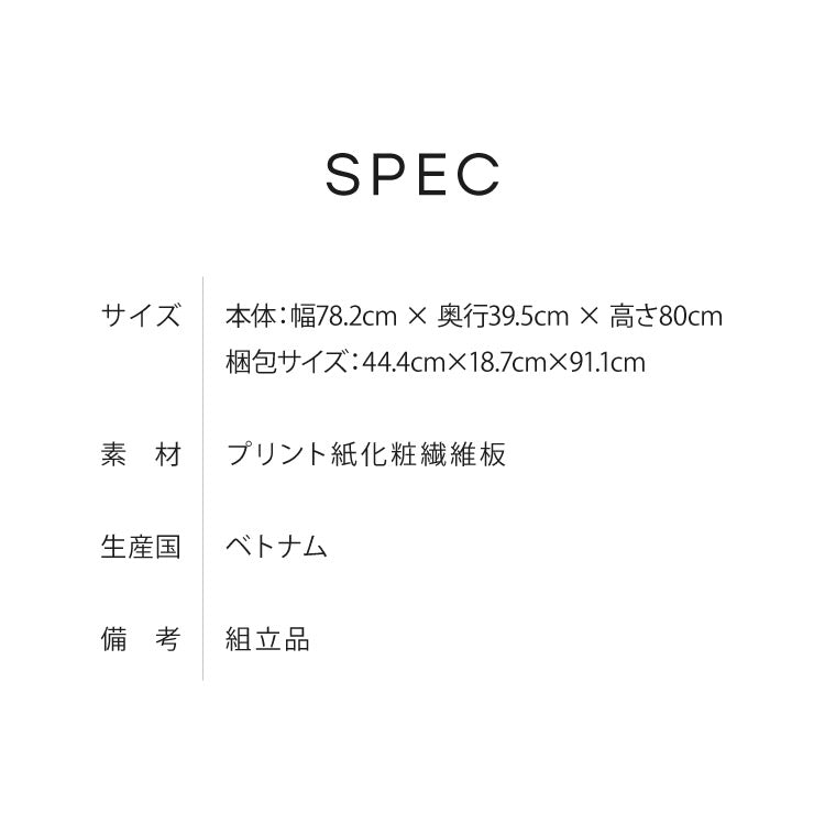 本体:幅78.2cm × 奥行39.5cm × 高さ80cm