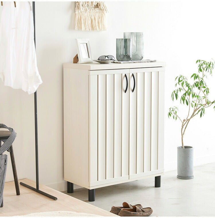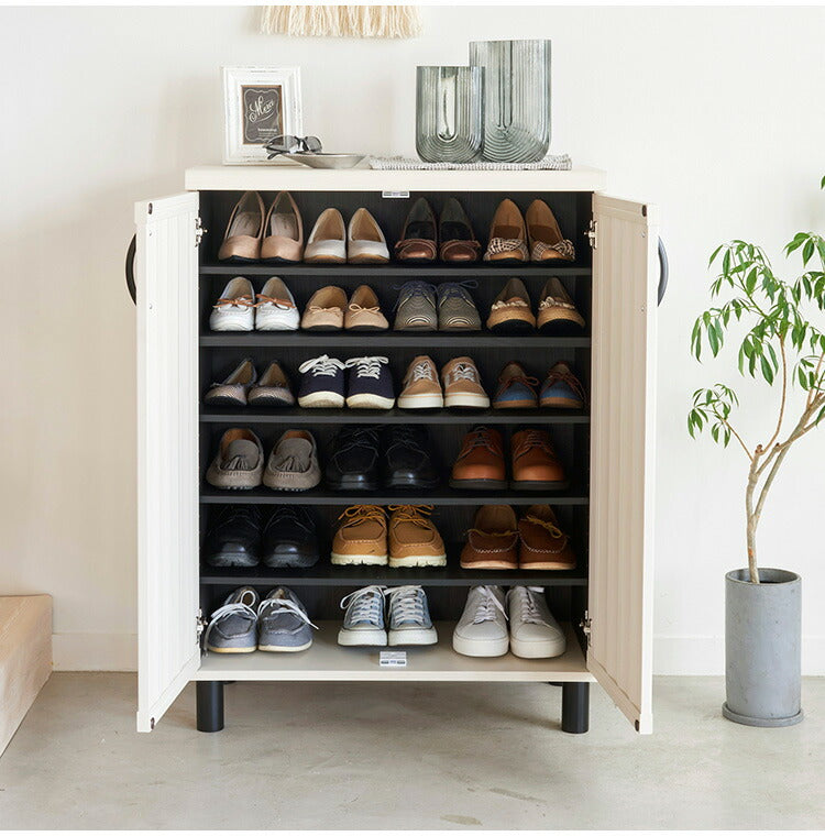 下駄箱 シューズボックス 幅75cm 高さ103cm ナチュラルブラウン 通気性 抜群 約24足収納 スリット扉 靴箱 玄関収納 シューズラック ガルバートン(代引不可)