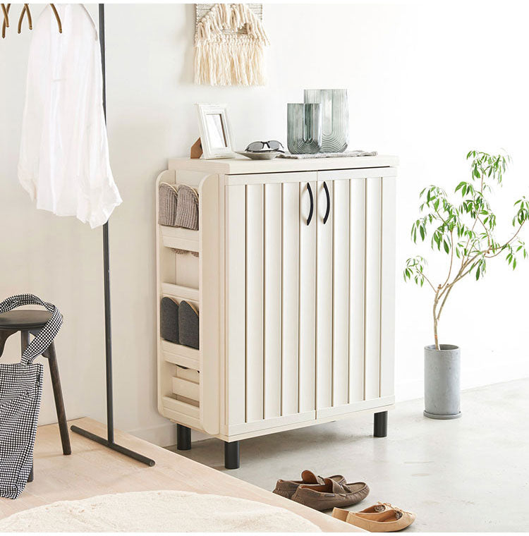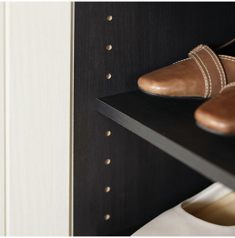 可能棚式で収納する靴に合わせてお好みの高さに設定が可能。お好みで別売りの専用スリッパラックを側面に取り付けられます。