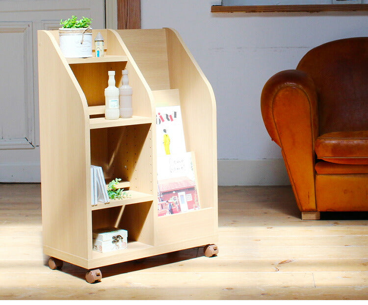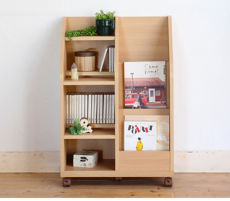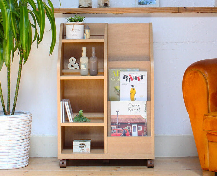 白井産業 リベルア マガジンラック オープンラック 本棚 キャスター付き 本棚 雑誌 収納 おしゃれ 木製 木目調 文庫 アンティーク 北欧 ブックラック(代引不可)