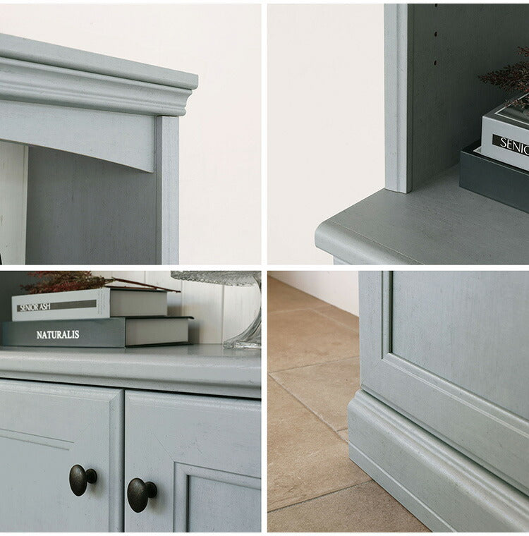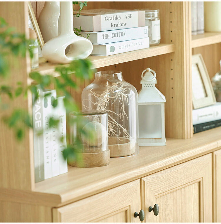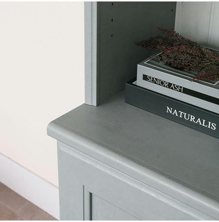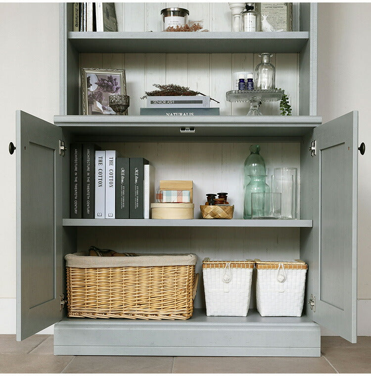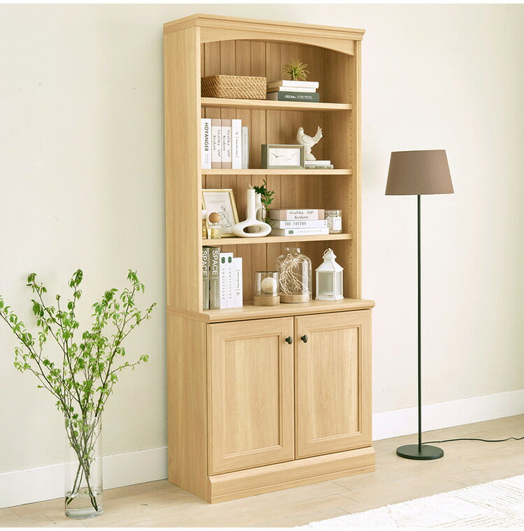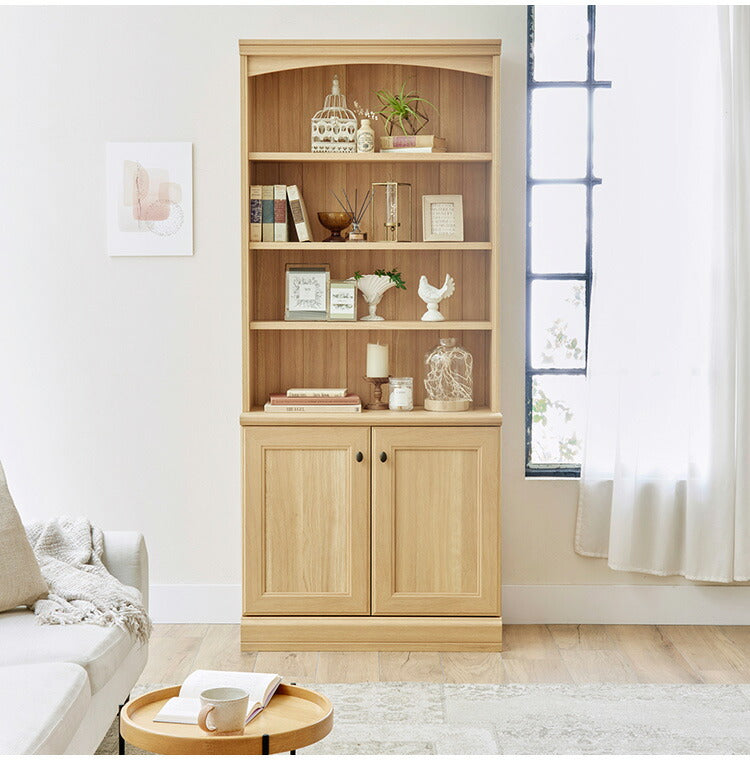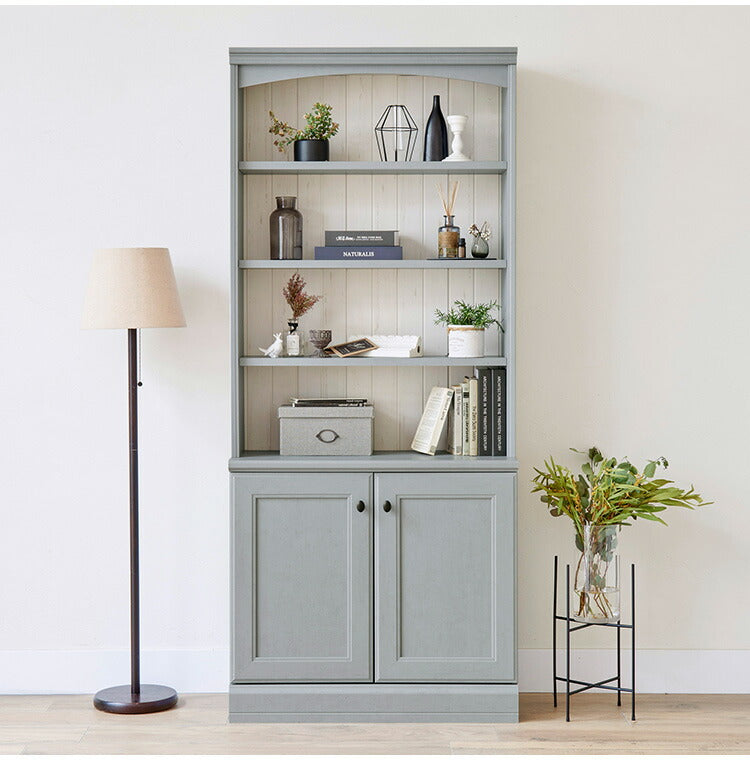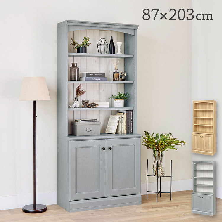 ディスプレイラック 幅87cm 高さ203cm ナチュラル ブラウン グレー ホワイト シェルフ 本棚 扉付き 収納 キャビネット リビング アンティーク調 ルミデ
