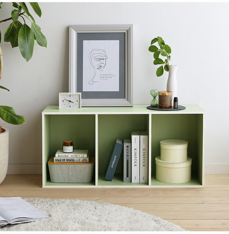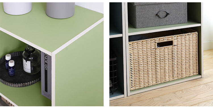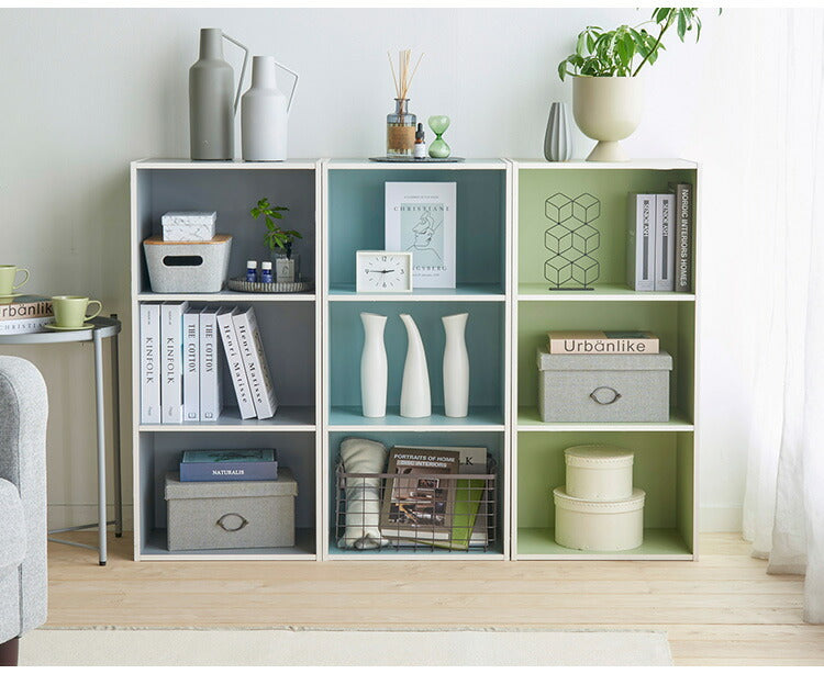 グレイッシュな色合いのくすみカラーのカラーボックス。カラーを楽しみながら、落ち着いた大人なインテリアをつくることができます。