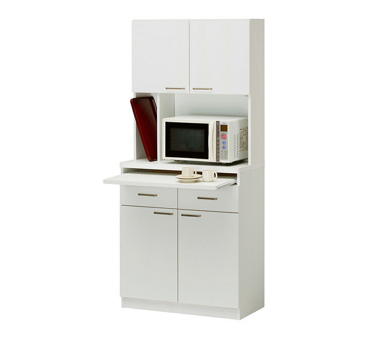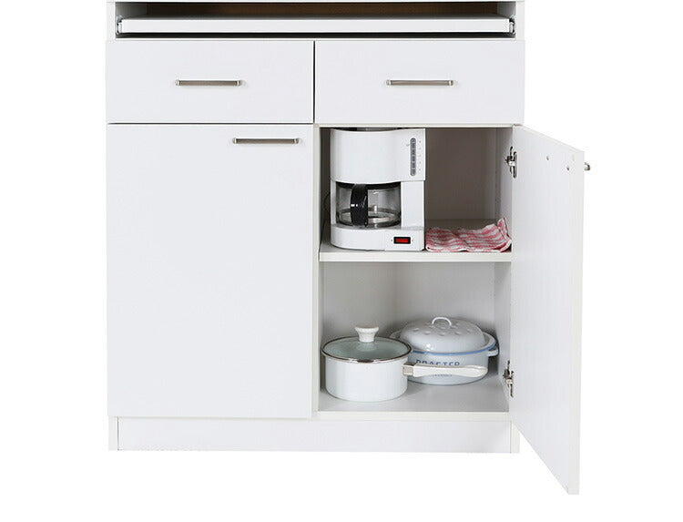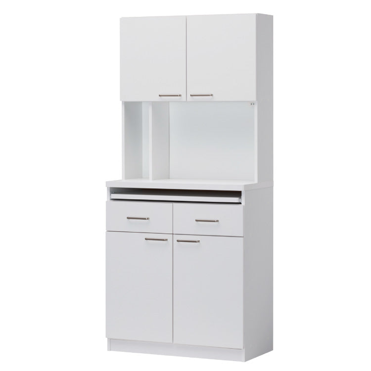 白井産業 モデレオ スライド付き カップボード キッチンボード 食器棚 収納 大容量 ハイタイプ 幅79.7 高さ178 白 ホワイト おしゃれ 北欧 引き出し付き(代引不可)