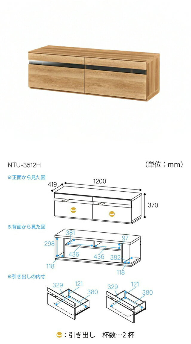 白井産業 テレビ台 幅120cm 高さ37cm 50V型対応 TVボード ローボード ナチュリカ リビング 家具 インテリア