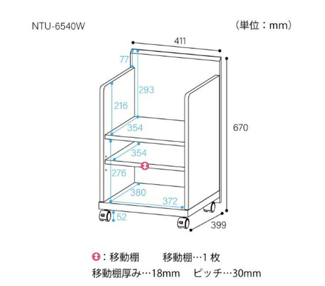 白井産業 サイドワゴン ラック 幅42cm 高さ67cm キャスター付 デスクサイド ランドセル収納 ナチュリカ