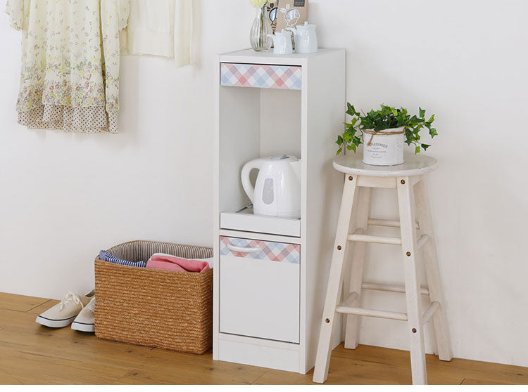 食器棚 ミニ 幅29cm 高さ90cm 北欧風 ホワイト 白 チェック柄 スライド棚付き 小さくてかわいい キッチン収納 スリム 白井産業(代引不可)