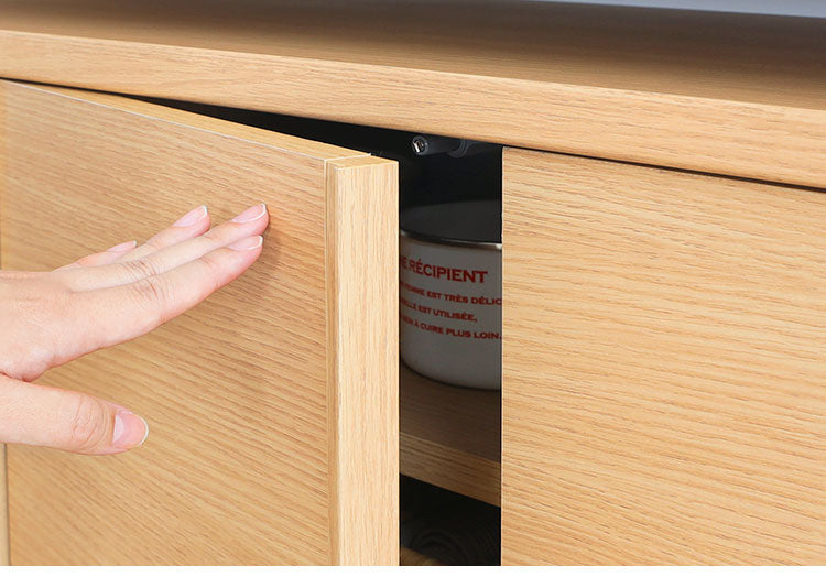 ・プッシュ式扉にすることで取っ手の出っ張りをおさえました。
