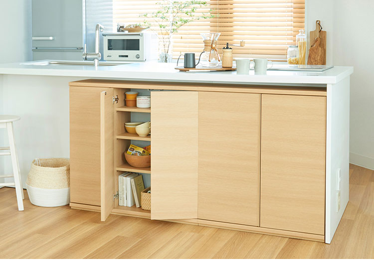 ・いくつかの幅を組み合わせて、カウンター下にぴったりの幅を選ぶことができるユニット収納です。