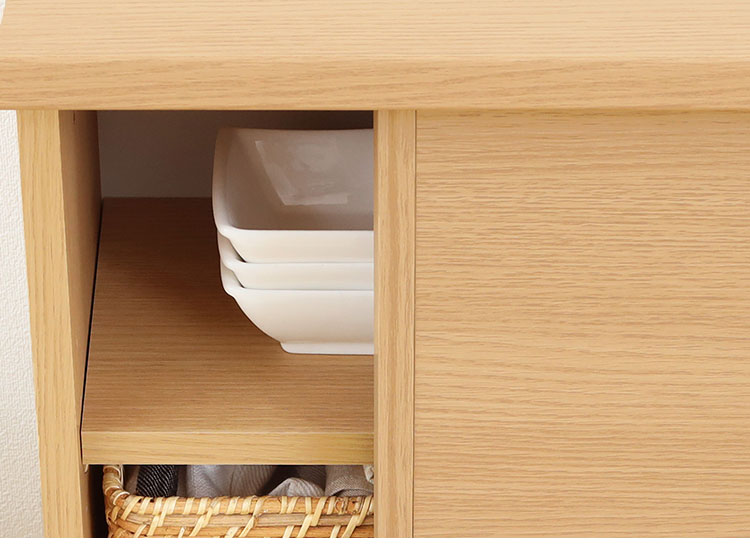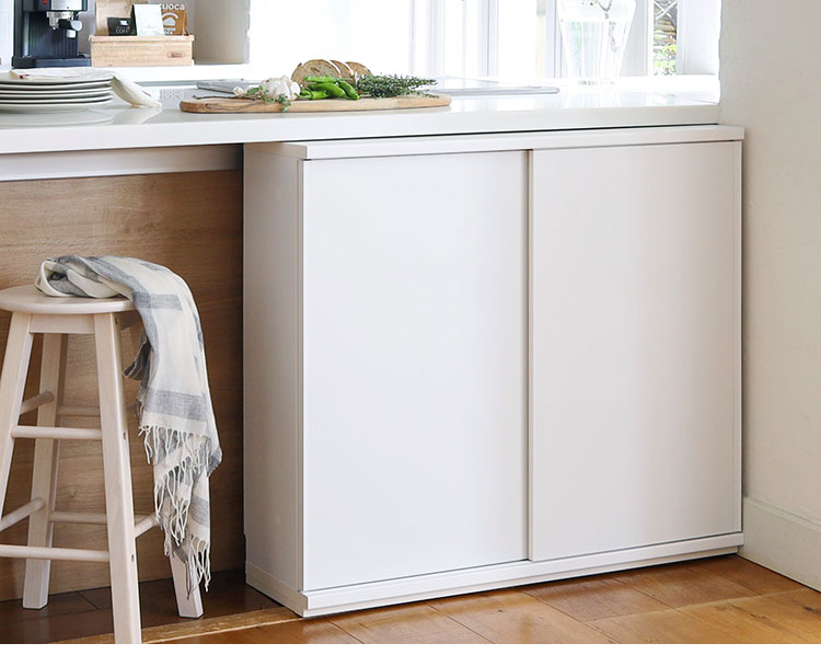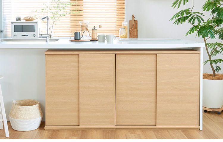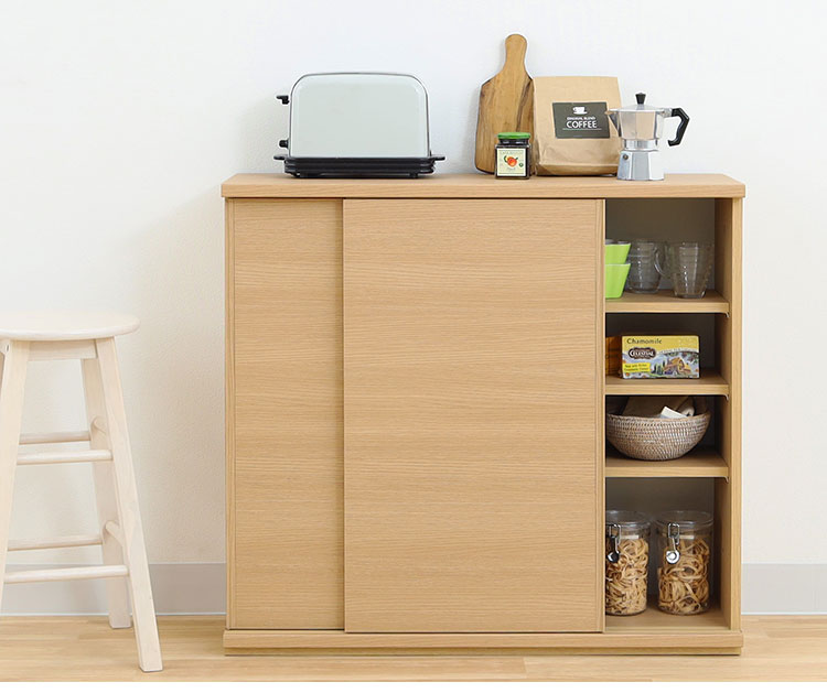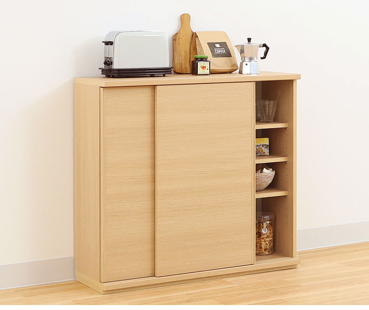 カウンター下収納 キャビネット 棚 幅90cm 高さ85cm 奥行30cm ナチュラルブラウン カウンター下 引き戸 収納 白井産業(代引不可)