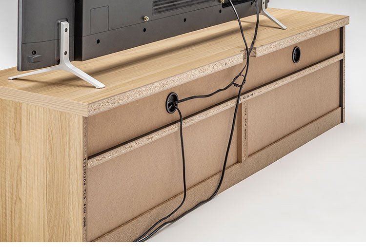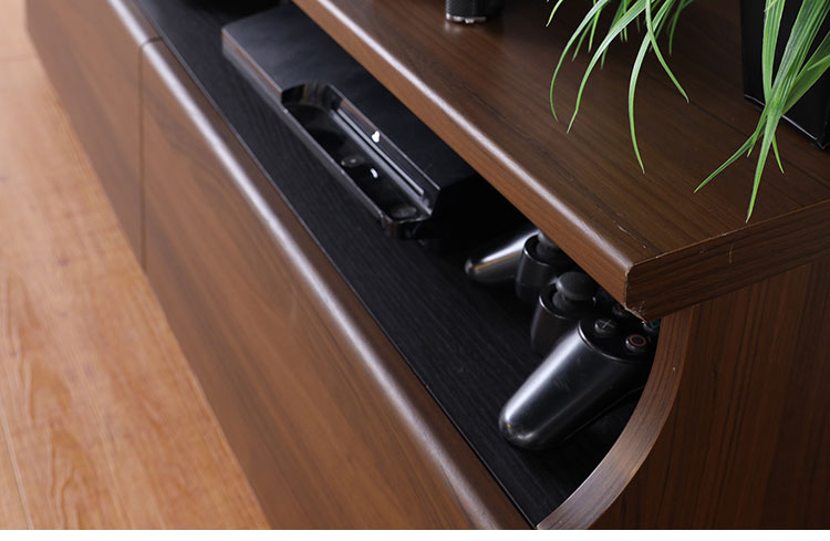 ・天板下のオープン部分には、左右それぞれ配線穴があります。配線を傷つけにくいゴムコーダー付きです。