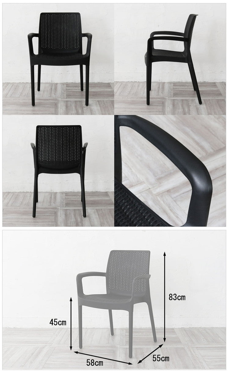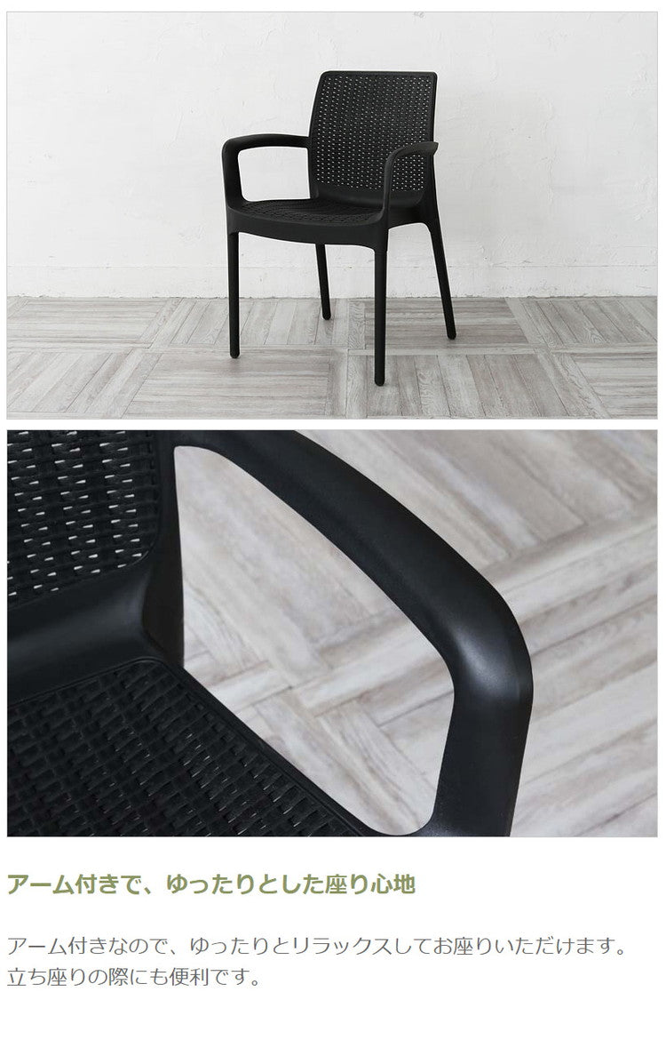 ガーデンチェア 屋外 肘掛け スタッキング 1脚 アウトドア バーベキュー キャンプ ガーデン 庭 テラス 黒 ブラック ダイニングチェア 椅子 ベランピング アウトドアリビング 西海岸 籐ラタン風(代引不可)