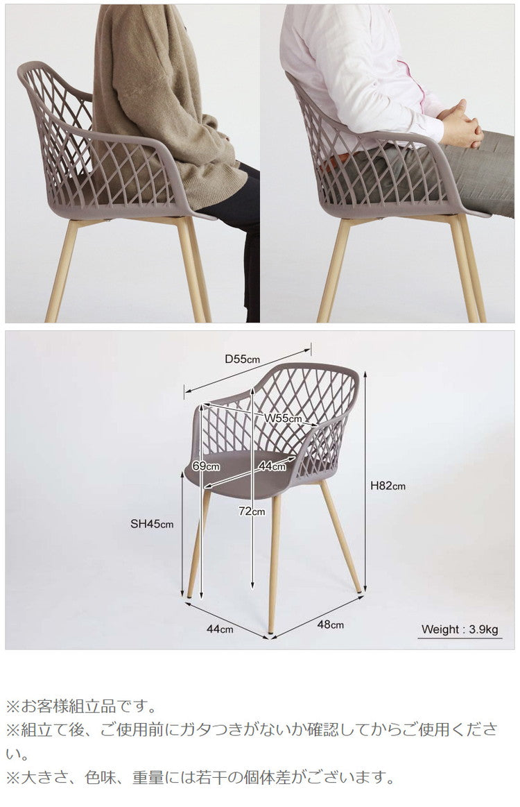 ダイニングメッシュ チェア 肘つき 北欧 くすみカラー椅子 いす イス アーム 肘付き ダイニングチェア テラス ガーデン 庭 屋外可(代引不可)