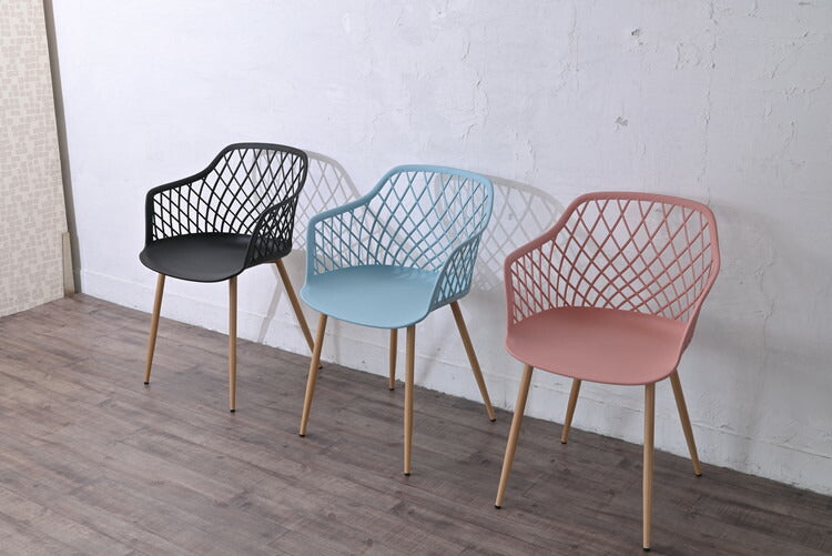 ダイニングメッシュ チェア 肘つき 北欧 4脚セット くすみカラー椅子 いす イス アーム 肘付き ダイニングチェア テラス ガーデン 庭 屋外可(代引不可)