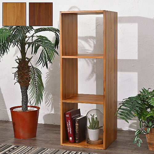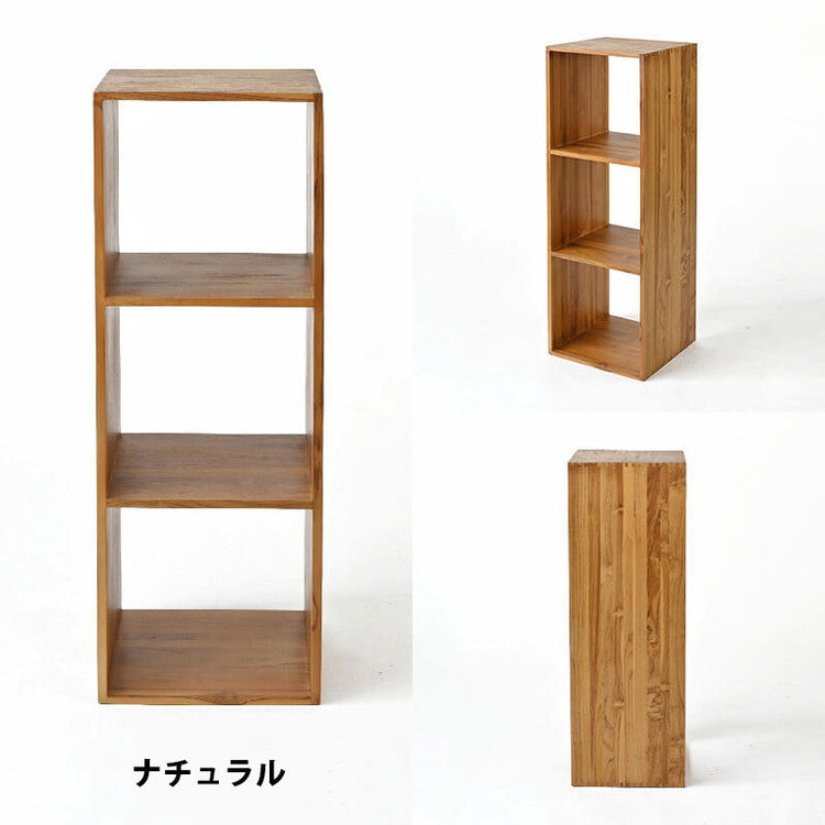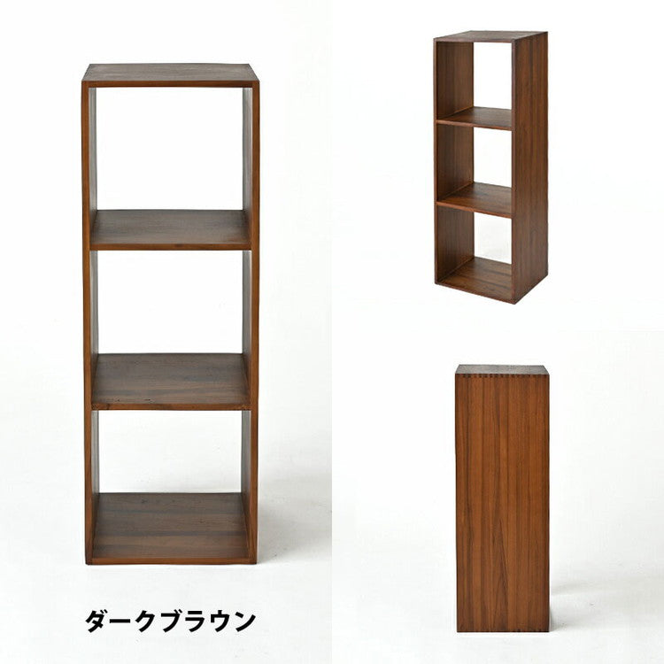 天然木 チーク材 収納 ラック オープンラック キューブボックス 棚 3段 三段 木製 おしゃれ アンティーク 北欧 シェルフ 木目調(代引不可)