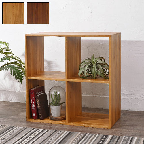 天然木 チーク材 収納 ラック オープンラック キューブボックス 棚 2×2 木製 おしゃれ アンティーク 北欧 シェルフ 木目調(代引不可)