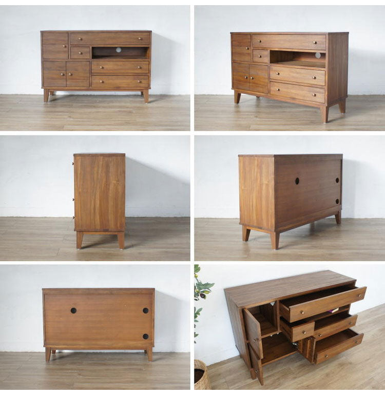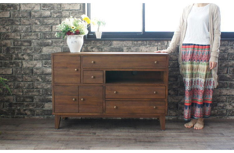 天然木 チーク無垢材 ダイニングボード リビングボード カウンタ― 収納棚 大容量 木目調 おしゃれ アンティーク 北欧 収納ボード キッチンボード(代引不可)