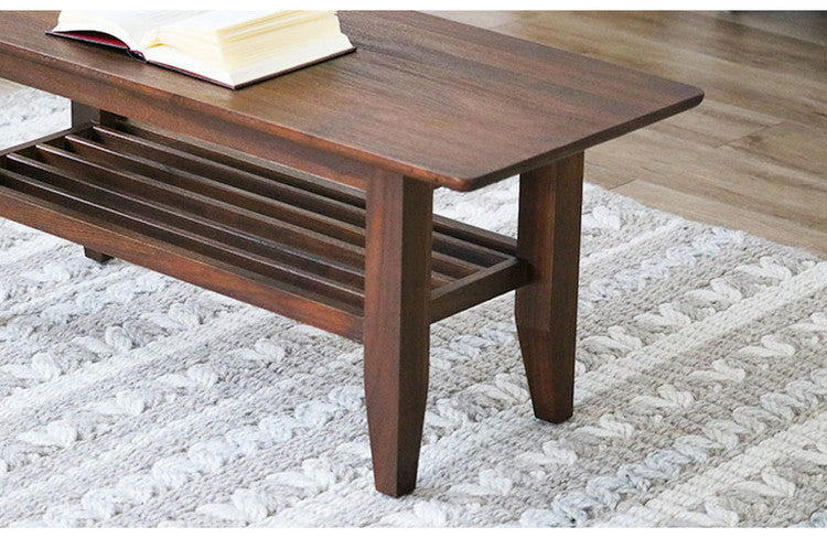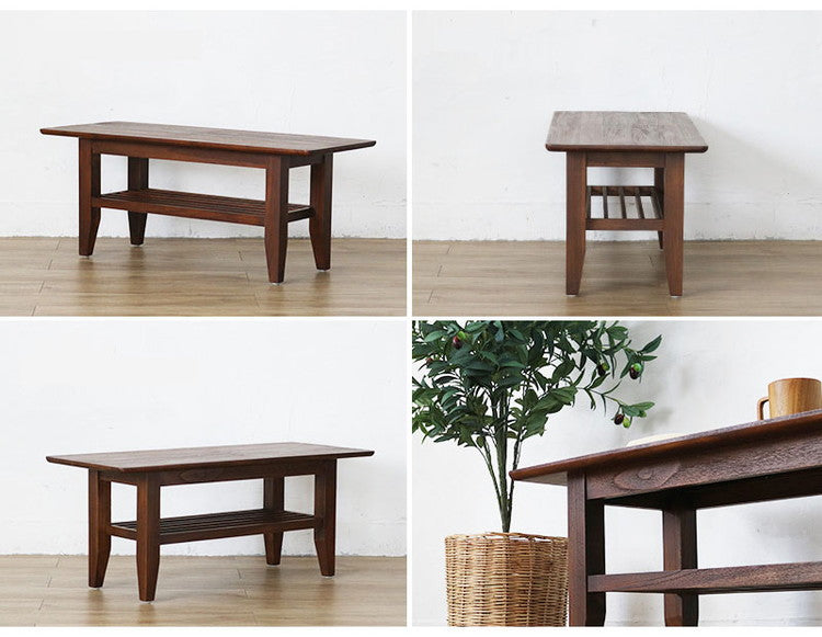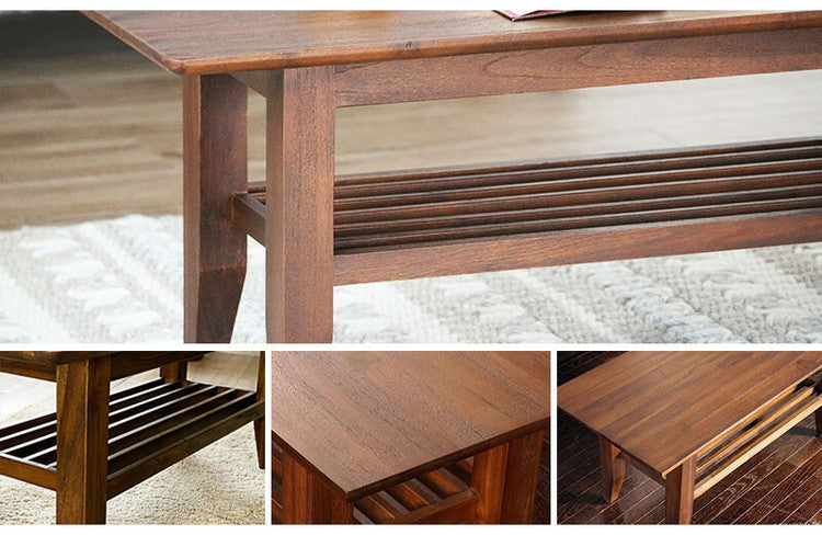 チーク無垢材でつくられた、アンティークな風合いのセンターテーブル。