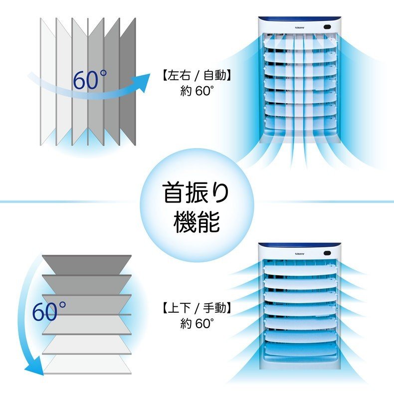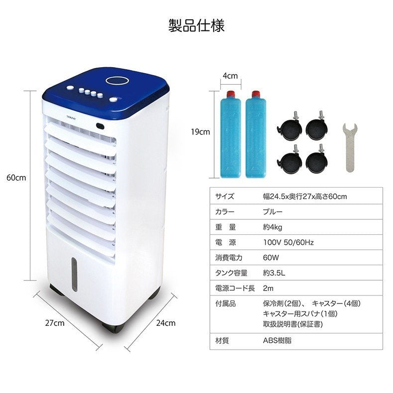 冷風扇 ブルー キャスター付き 静音 取っ手 簡単操作 水洗い コンパクト スイング機 3段階調整 冷風 クーラー スポットクーラー ミニエアコンファン ポータブルクーラー 送風機 SY-076(代引不可)