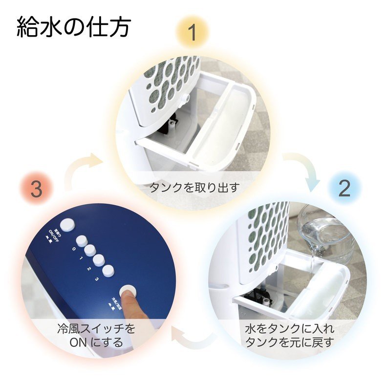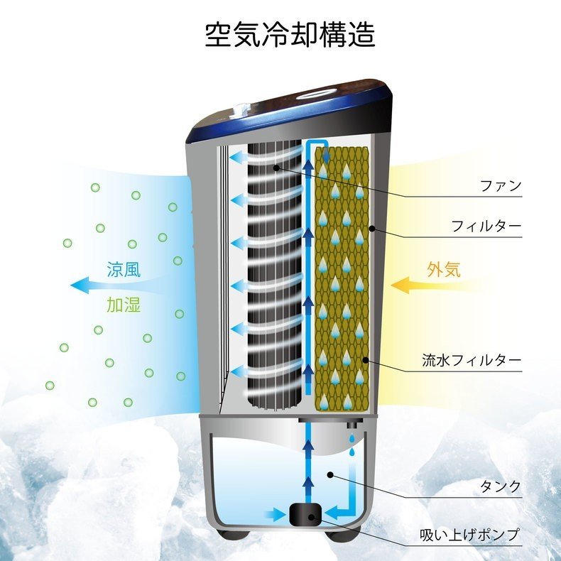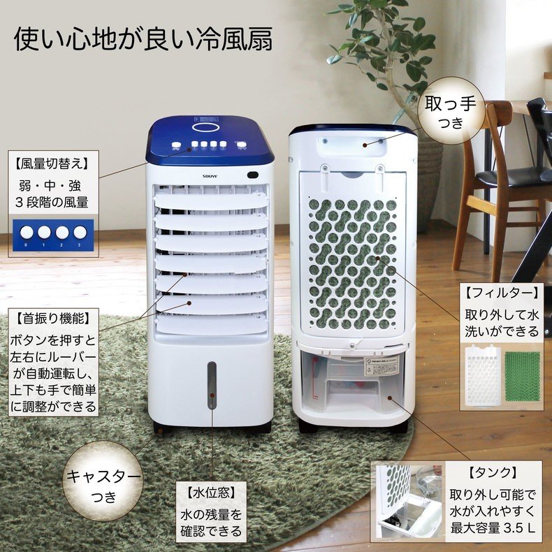 ・水の力を利用して涼しい風を作り出す、スタイリッシュな冷風機!