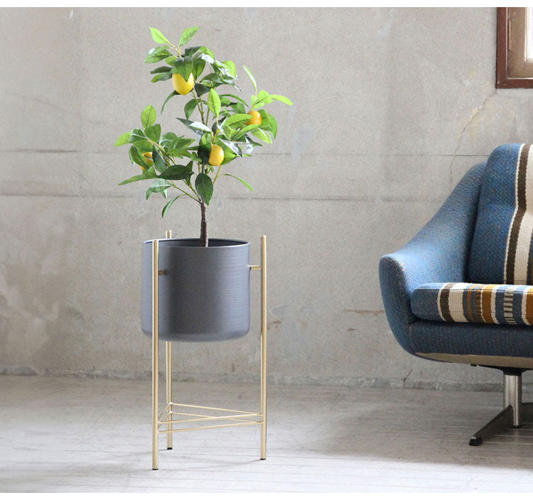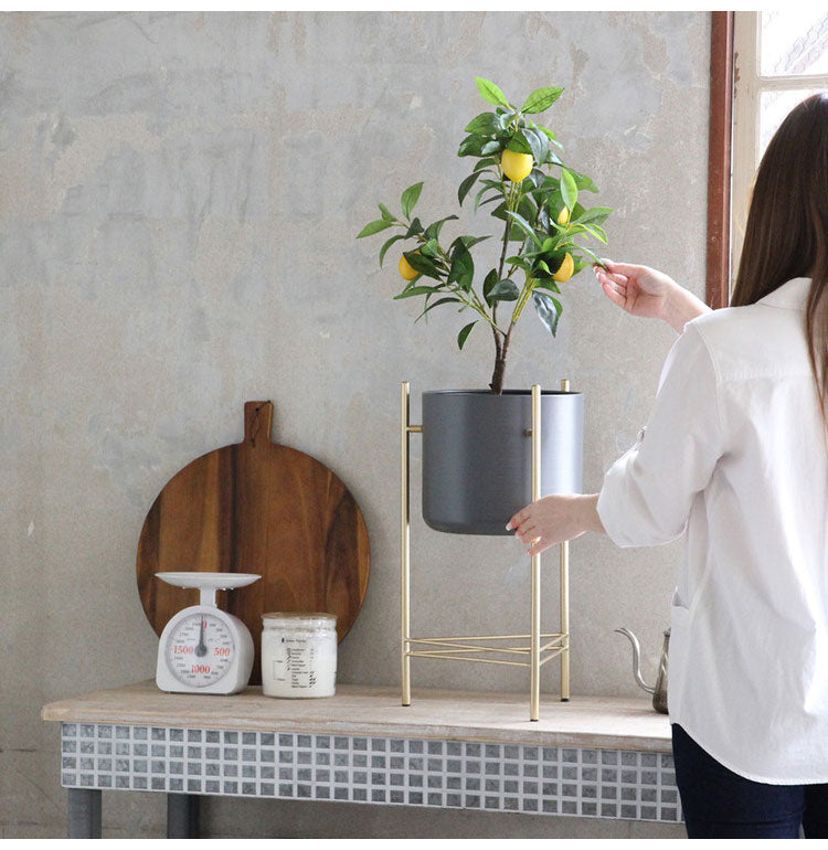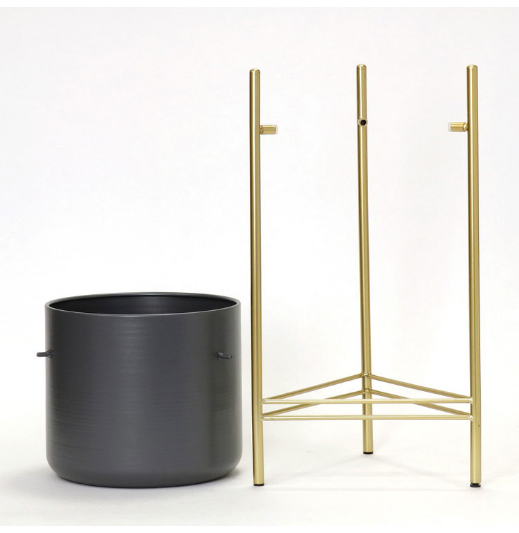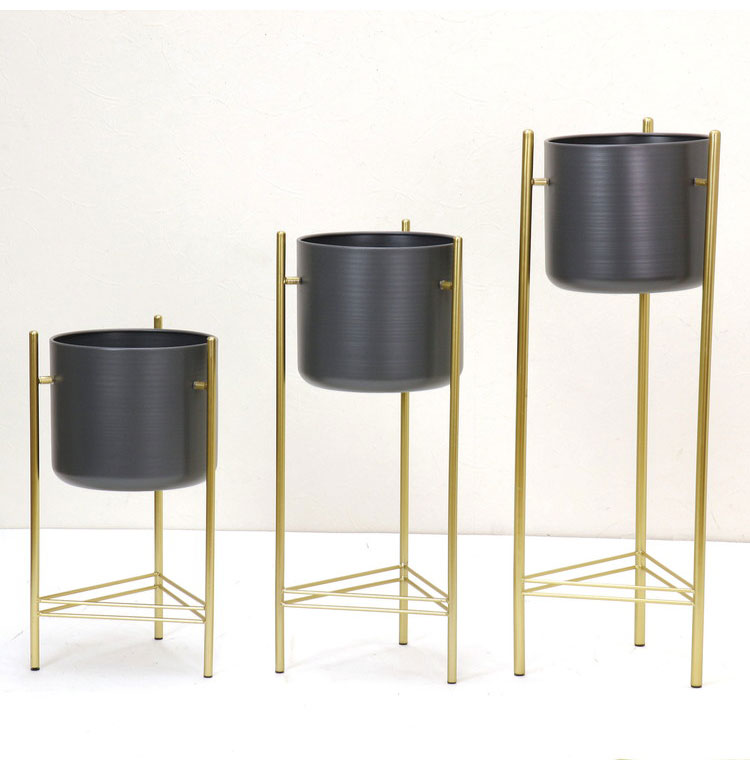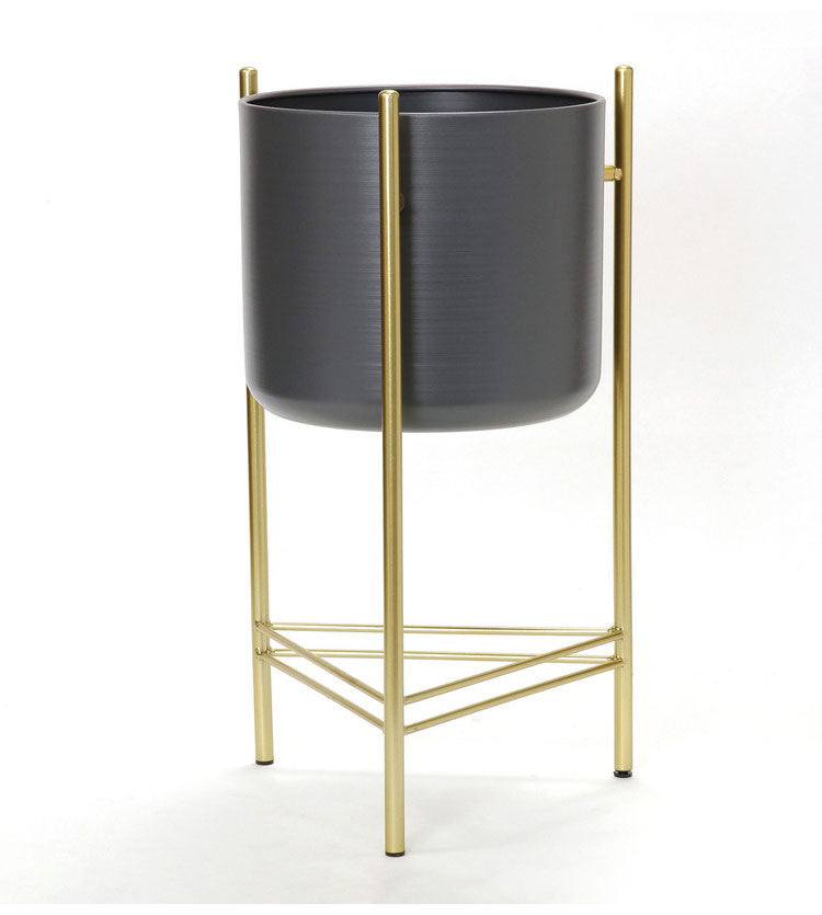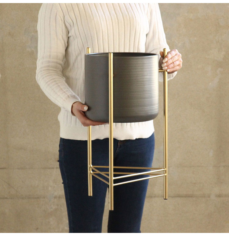 ゴールドアイアン 脚付きプランター台 Sサイズ フラワースタンド グレー ポット 鉢植え アイアンスタンド 花台 グリーン 植物 ディスプレイ ゴールドステム おしゃれ