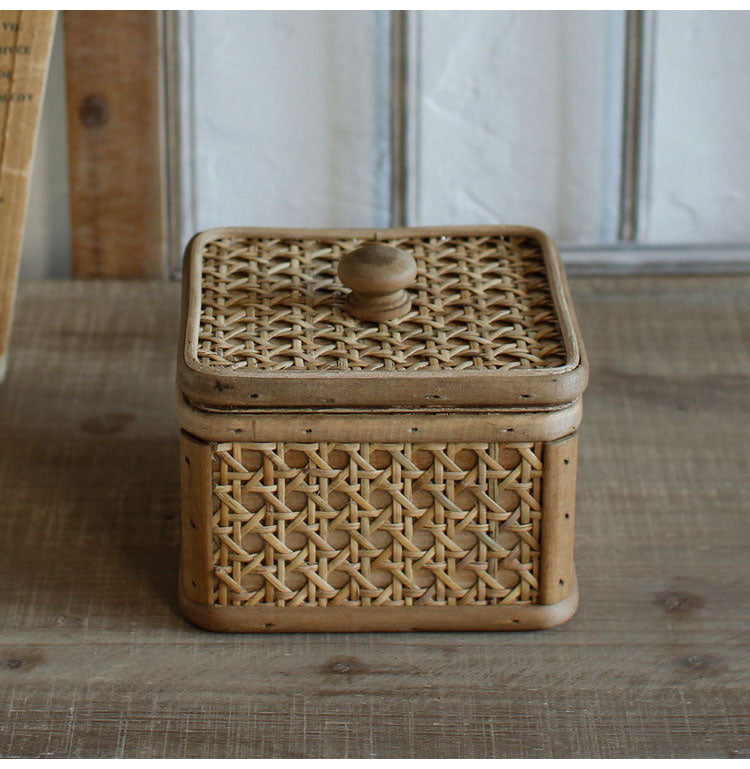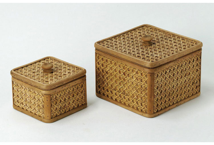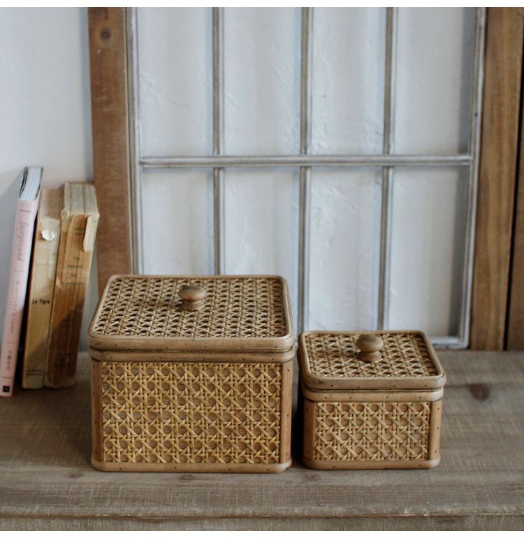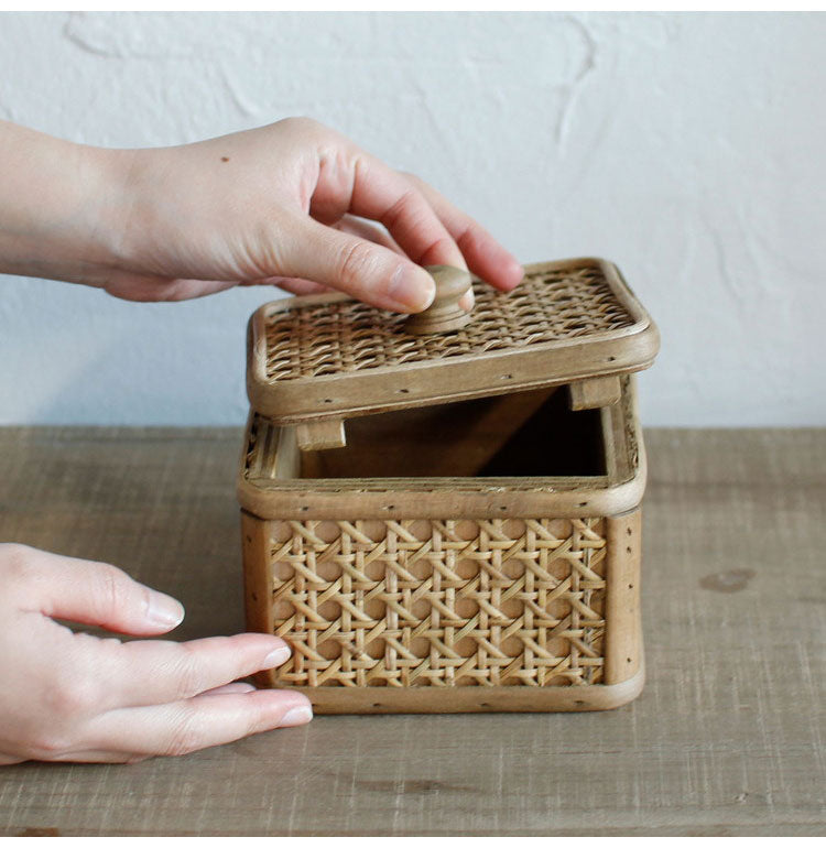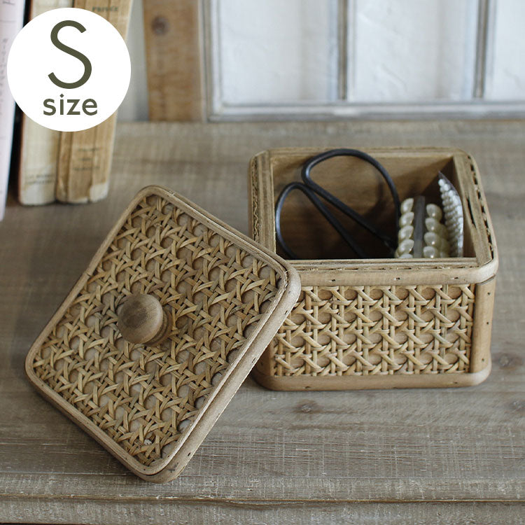 ラタン 蓋付き スクエアボックス Sサイズ 天然素材 フタ付き ボックス 箱 小物入れ 収納 籐 アジアン家具 韓国インテリア ナチュラル ラタンカントリー おしゃれ