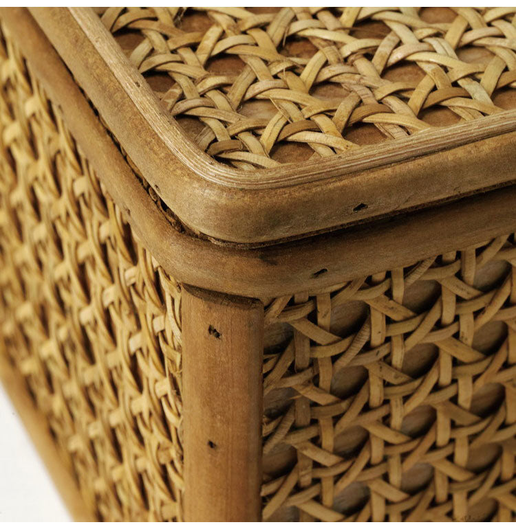 ■日常的に使う収納ボックスは、こだわりの天然素材のものを選びたい。ラタンの装飾がさりげなくおしゃれに仕上げています。■蓋付きなので、見せたくないサニタリー用品や救急セットなど実用的なものを入れるのに便利です。