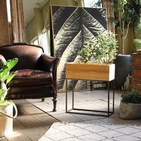 ■木とアイアンの異素材を組み合わせてデザインされたプランターです。