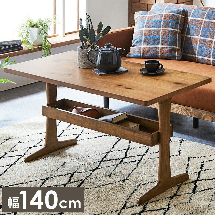 テーブル 幅140cm 木目調 ヴィンテージ 北欧 おしゃれ 収納 収納棚付き リビングテーブル センターテーブル カフェ風 長方形 コンパクト 一人暮らし(代引不可)