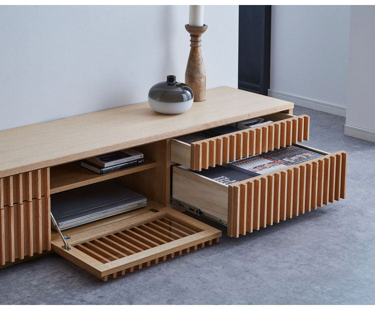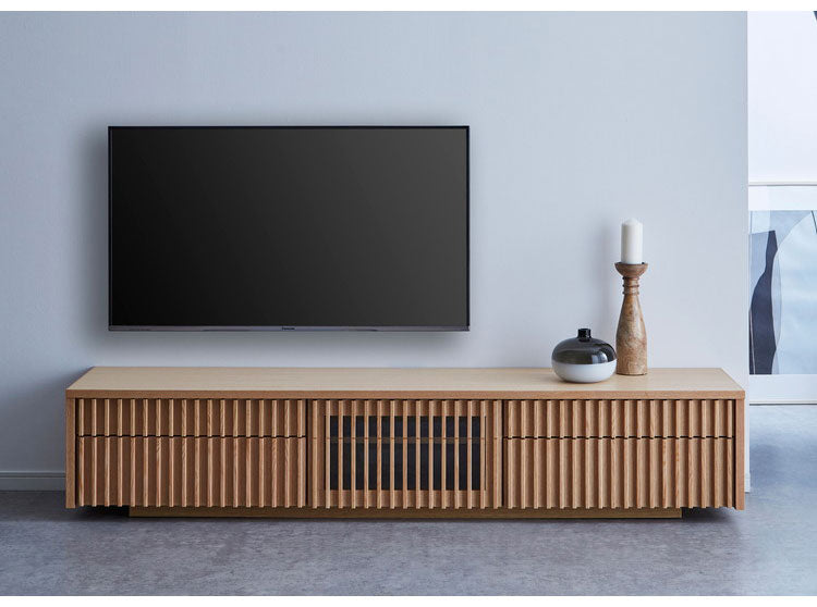 和とモダンの調和を意識したデザインの国産フロートテレビボード。