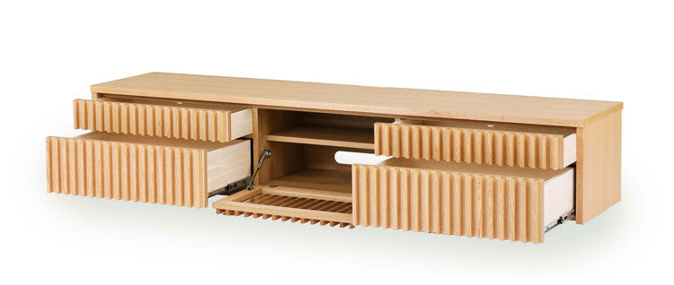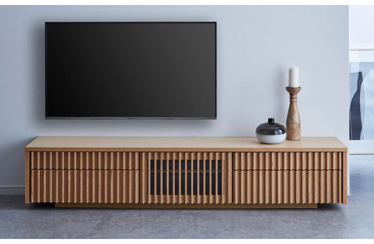 和とモダンの調和を意識したデザインの国産フロートテレビボード。
