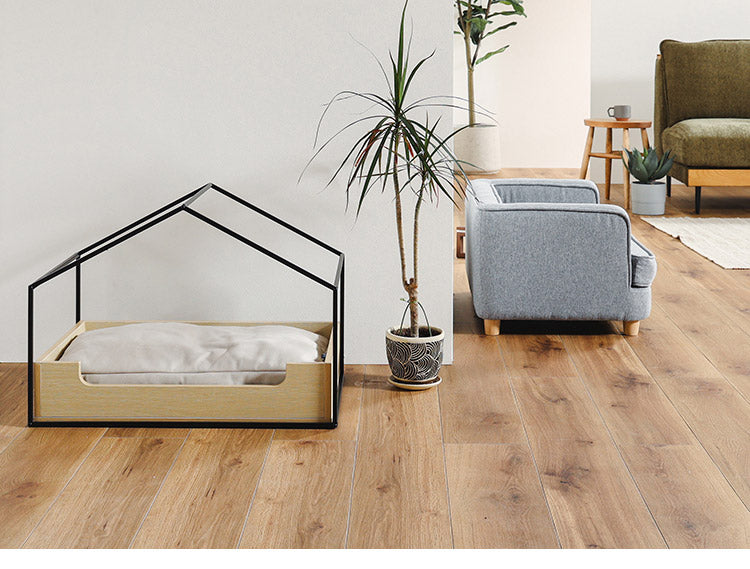 シンプルなデザインに合わせやすいスタイリッシュなデザインのペットベッド。