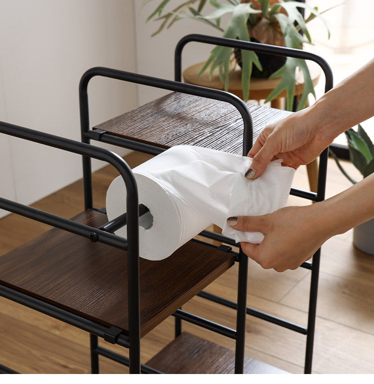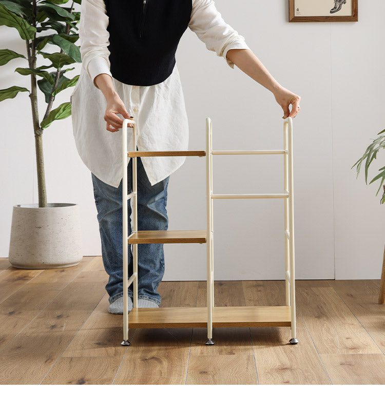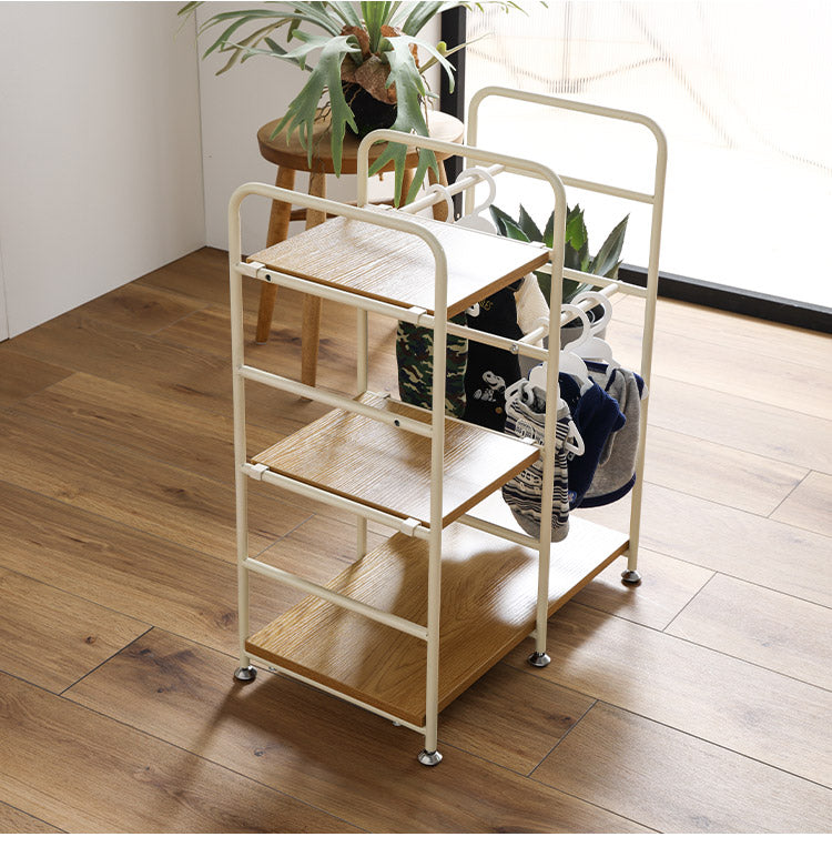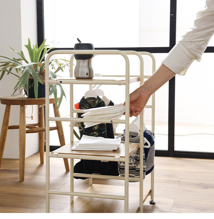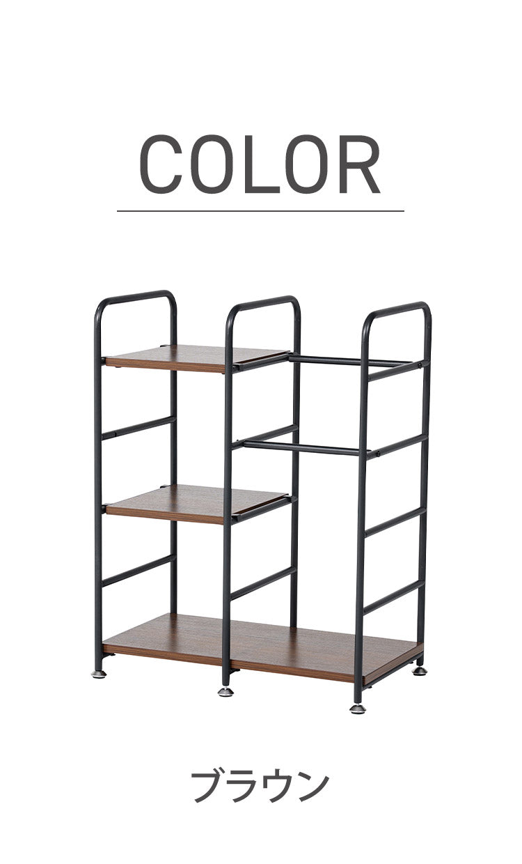 2連ポールと2段の棚で効率的に収納でき、自由にポール位置や棚板の調節も可能です。
