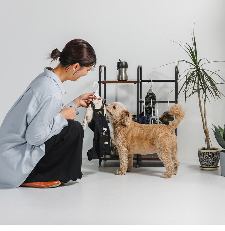 ハンガーとペットグッズをコンパクトに収納できるペット用ハンガーラック