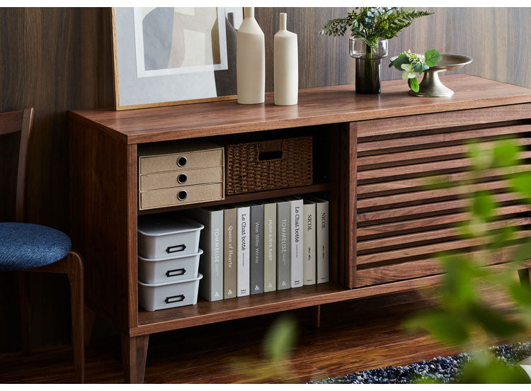 左側の収納部分は可動棚仕様のため収納スペースを有効活用できます。