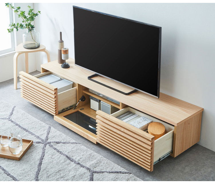 テレビ台 国産 幅180cm ローボード ロータイプ 格子 引き出し フラップ扉 大容量 木製 和風 オーク 無垢ルーパー 高級感 新生活 引っ越し 模様替え(代引不可)