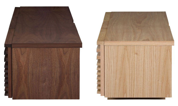 前板には専用に設計された無垢のルーバーをもちいています。