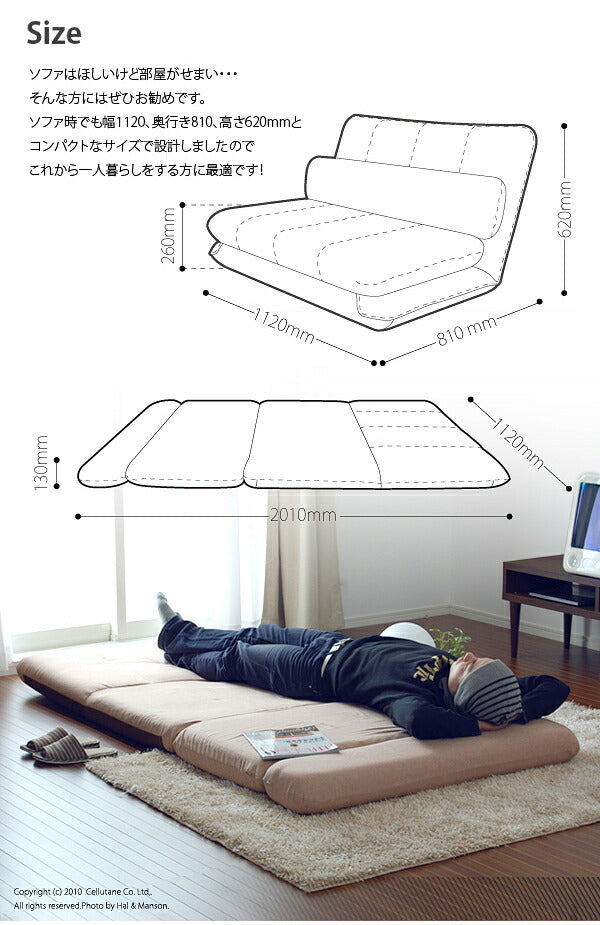 サイズ:W1120xD810〜2010xH130〜620(ソファ時の座面の高さ260)mm