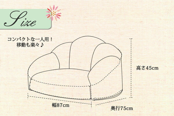 コロンとした形がかわいいコンパクトな一人掛けのソファ。4つのカラーから選択することができるので、お客様のお部屋の雰囲気に合わせて御購入いただけます。