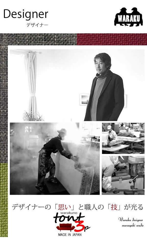 安心の日本製。色が選べる。3人掛けソファー。