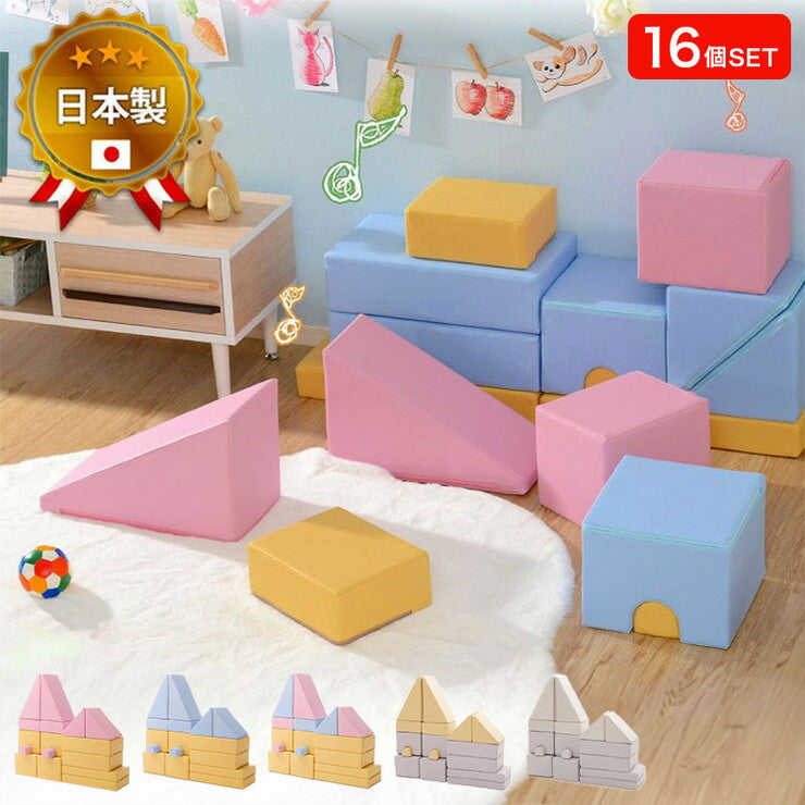 積み木 クッション 16個セット 日本製 ブロック 積み木クッション ベビー キッズ 保育園 託児所 プレイルーム おもちゃ セット(代引不可)
