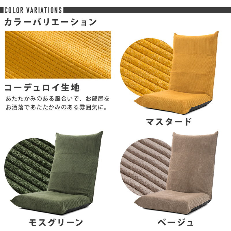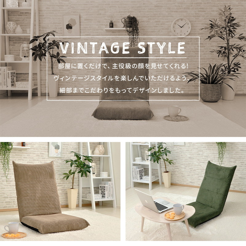 日本製 ヴィンテージ ハイバック 座椅子 コーデュロイ 1人掛け 一人掛け コンパクト ウレタン おしゃれ リクライニング 背もたれ ローチェア チェア 国産(代引不可)