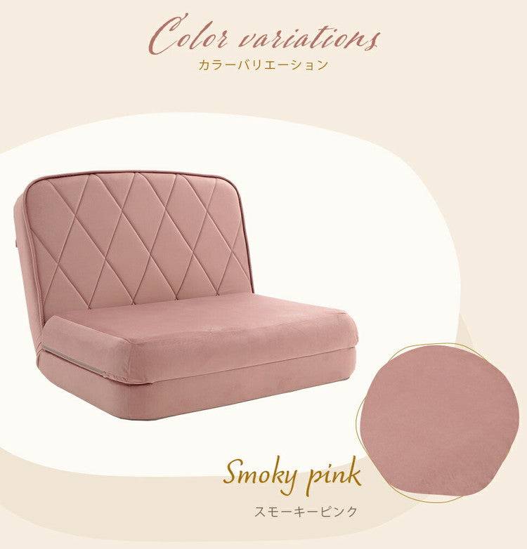 3way ソファベッド ソファ カウチソファ ベロア コンパクト ダイヤモンドキルト 一人暮らし ワンルーム くすみカラー 上品 高級感 大人かわいい リクライニング おしゃれ 北欧 フラット(代引不可)