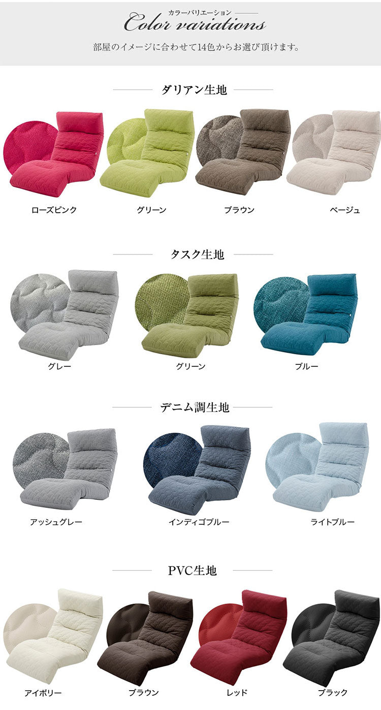 座椅子 選べる14種類 42段階リクライニング ハイバック 日本製 テレワーク 腰痛 コンパクト 姿勢 腰 寝れる 首 作業 デスク 仕事 ローソファー 1人掛け 一人暮らし(代引不可)