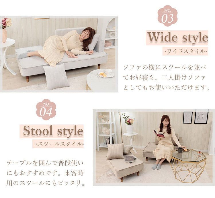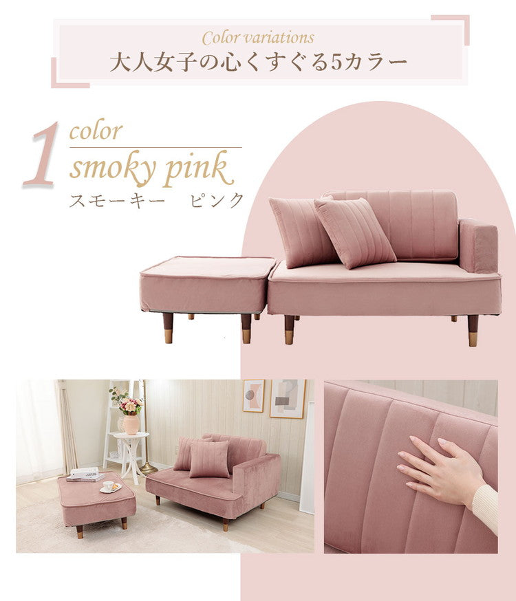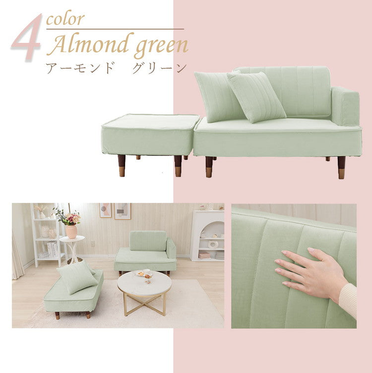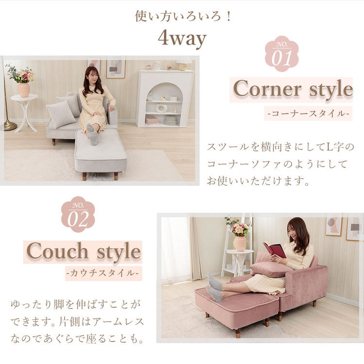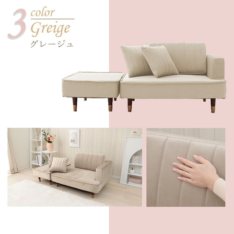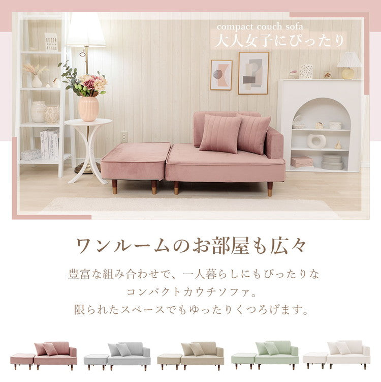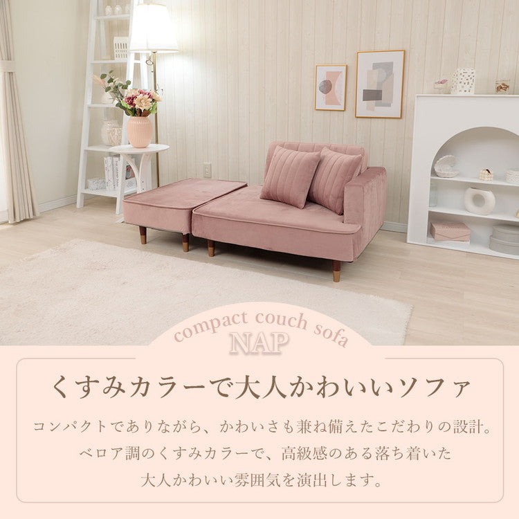 ソファ カウチソファ コンパクトソファ 2人掛け ベロア生地 国産 くすみカラー 1人暮らし 大人女子 上品 おしゃれ スツール クッション付き 4通りのスタイル 日本製 インテリア 北欧 かわいい(代引不可)