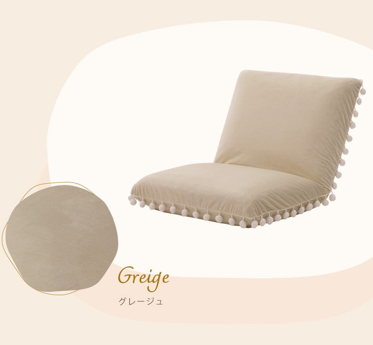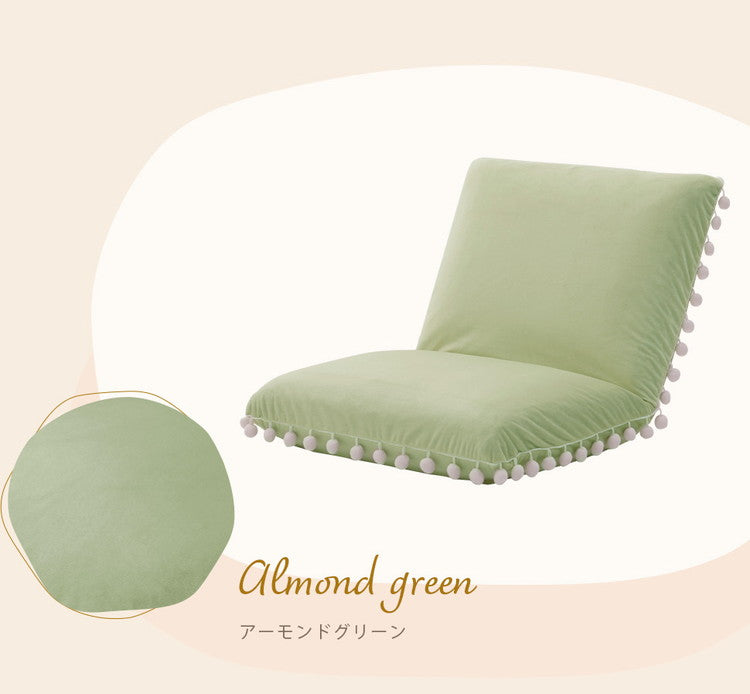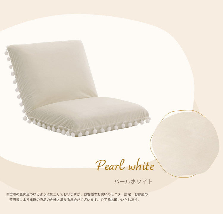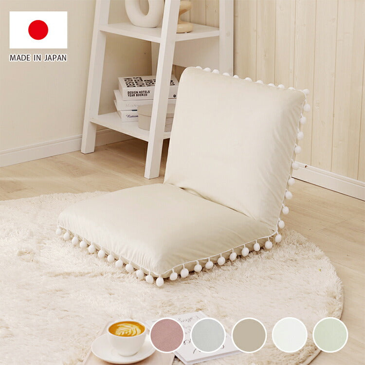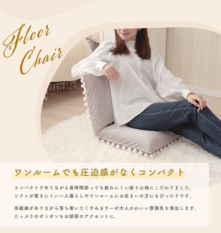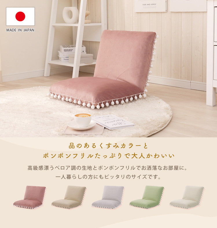 座椅子 ベロア調 ポンポン コンパクト 日本製 リクライニング 14段階 一人暮らし リビング ワンルーム インテリア おしゃれ かわいい 北欧 国産 フロアチェア イス いす 椅子 おうち時間(代引不可)